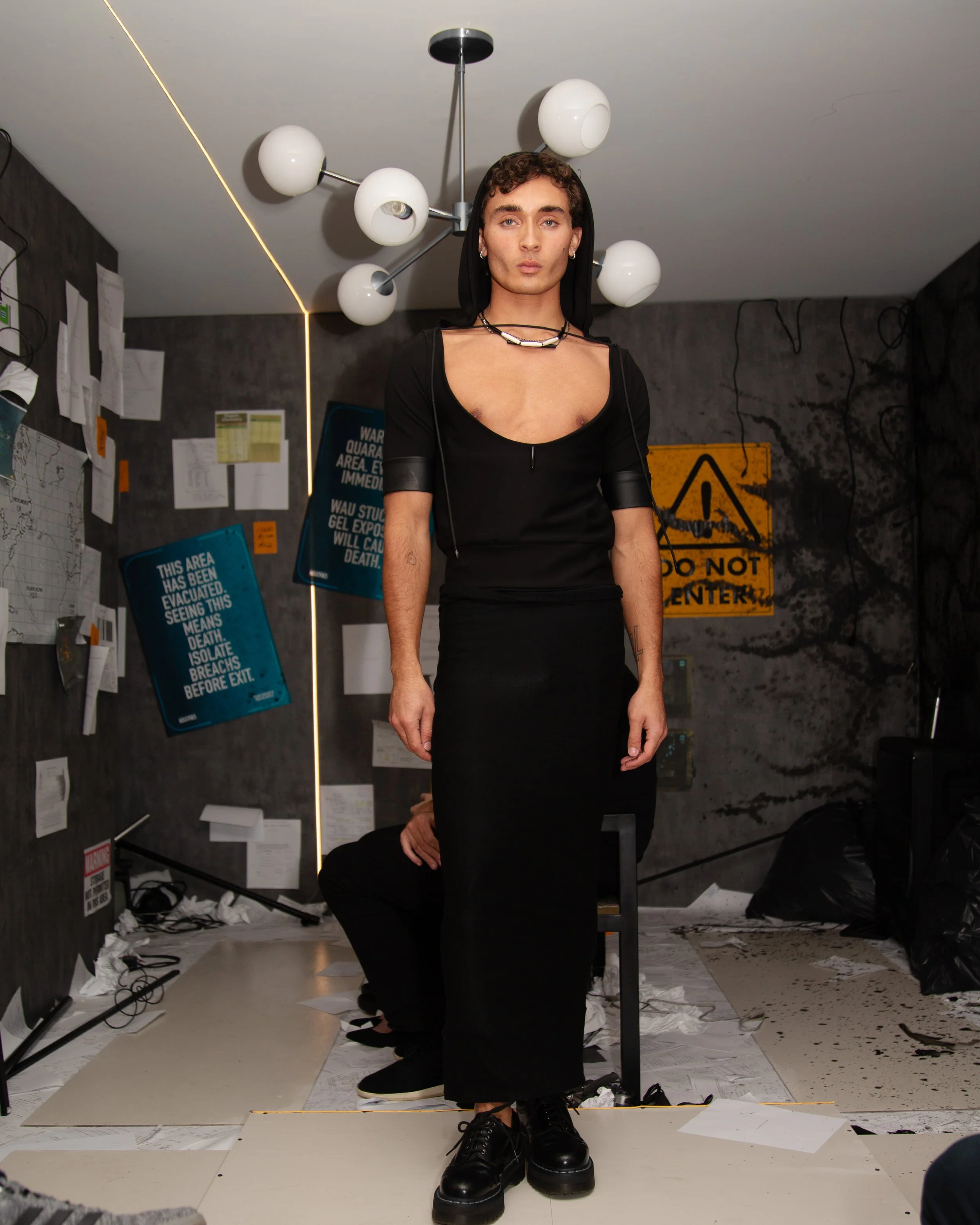 This was my first show, and it was an insane experience overall. There was no production, no show running. The models had never even been fit. We essentially assembled it live in front of the full guest list. I had to hold the presentation slightly after the Spring 2024 New York Fashion Week season, by then Milan had already started. this was because most of my peers at the time couldn’t make it otherwise. They were caught up in their internships, something I kept refusing to do through the very end of my time in school.